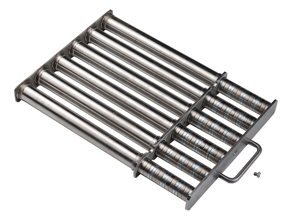 - samostatný, prázdny rošt je potom bez magnetického pola a Fe-nečistoty z neho voľne opadnú do odpadnej schránky. Zbytkové nečistoty je možné jednoducho zotrieť štetcom.